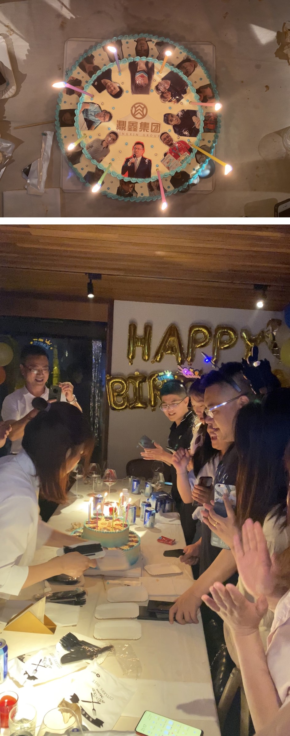 一個蛋糕象征著一個團結(jié)的集體,一支支閃亮的蠟燭象征著一顆顆跳動的心。印著20多位壽星頭像的蛋糕擺在大家的面前,星光點點映出了家人們幸福的笑臉。伴著生日快樂的歌聲,壽星們開始許愿、吹蠟燭、吃蛋糕,享受著這美妙的一刻,之后在依依不舍中結(jié)束了這場生日會。