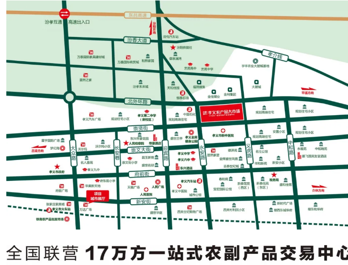 孝義農(nóng)產(chǎn)品大市場(chǎng)位于城市主干道永安路與崇賢街交匯處,項(xiàng)目總投資10億元,占地面積約220畝,總建筑面積約17萬㎡,涵蓋了農(nóng)產(chǎn)品交易區(qū)、農(nóng)特優(yōu)展銷區(qū)、商務(wù)辦公區(qū)、倉(cāng)儲(chǔ)加工區(qū)、冷鏈物流區(qū)、配套服務(wù)區(qū)六大功能區(qū)。項(xiàng)目建成后,將成為集農(nóng)產(chǎn)品展覽交易、電子商務(wù)、電子結(jié)算、加工配送、凈菜加工、冷鏈物流、質(zhì)量檢測(cè)、信息發(fā)布、創(chuàng)業(yè)孵化、金融服務(wù)、休閑娛樂等功能為一體的現(xiàn)代化大型綜合服務(wù)平臺(tái)。