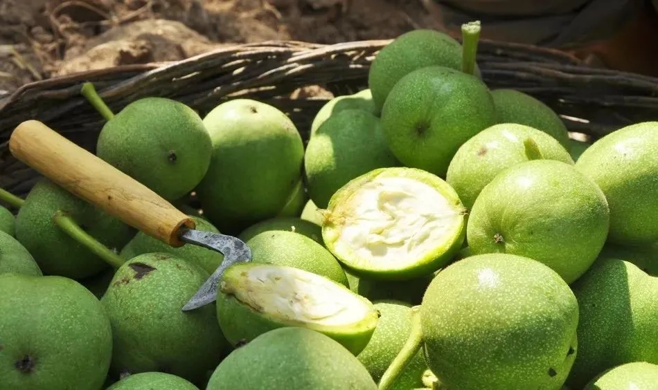 王教授詳細(xì)介紹了新型優(yōu)質(zhì)核桃品種的特性,并帶大家來到了核桃豐收區(qū)。一顆顆又圓又大的新鮮核桃整裝待發(fā),據(jù)王教授介紹,這些核桃經(jīng)過清洗、脫皮、晾曬、加工、包裝等,制作成核桃油、棗夾核桃、核桃仁堅(jiān)果等產(chǎn)品再銷售。