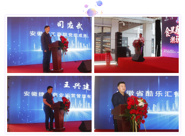 受邀出席本次活動(dòng)的領(lǐng)導(dǎo)有新疆駐安徽工作組黨委書記陳翰林、安徽省統(tǒng)戰(zhàn)部非公經(jīng)濟(jì)處處長韓永龍、安徽省工商聯(lián)副主席司應(yīng)武、合肥市委書記辦公室主任夏躍民、合肥市審計(jì)局副局長張仁山、合肥市廬陽區(qū)商務(wù)局副局長朱駿、合肥福州商會秘書長陳可逸先生、安徽鼎鑫集團(tuán)總裁張曉東、安徽捷成商業(yè)運(yùn)營管理有限公司總經(jīng)理王興建、安徽省酷樂匯餐飲管理有限公司總經(jīng)理甄勇,各位領(lǐng)導(dǎo)分別為本次開街儀式做開幕發(fā)言。