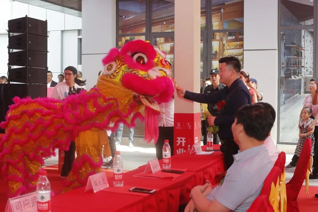 最激動(dòng)人心的當(dāng)屬“祥獅采青”表演。安徽鼎鑫集團(tuán)總裁張曉東先生與安徽捷成商管總經(jīng)理王興建先生登臺為祥獅點(diǎn)睛,送上紅包祝福。一點(diǎn)左眼,寓意金壇吾悅靈氣滿身;二點(diǎn)右眼,寓意金壇吾悅“志在乾坤,金玉滿堂”;三點(diǎn)天庭,寓意食里春風(fēng)美食嗨街鴻運(yùn)當(dāng)頭福星高照。點(diǎn)睛結(jié)束,沉睡的祥獅逐漸蘇醒,踏著祥瑞春風(fēng)開始采青表演。祥獅爬上高桿采青,預(yù)祝食里春風(fēng)美食嗨街一定會步步高升大展宏圖。祥獅采青結(jié)束,開始拋青,祥獅將得到的財(cái)富與祝福拋出,送給在場的每一位尊敬的來賓。安徽省酷樂匯餐飲管理有限公司總經(jīng)理甄勇先生為祥獅接青,并送上紅包祝福。