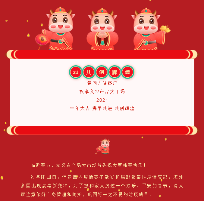 就地過(guò)年保安康,眾誠(chéng)抗疫力量強(qiáng)丨孝義農(nóng)產(chǎn)品大市場(chǎng)祝外地過(guò)年的人們牛年吉祥!