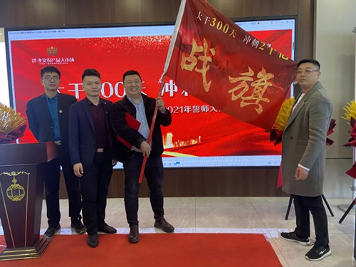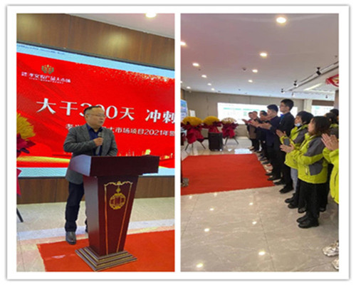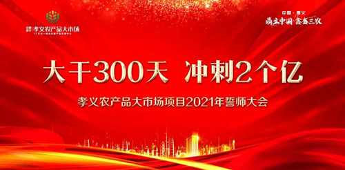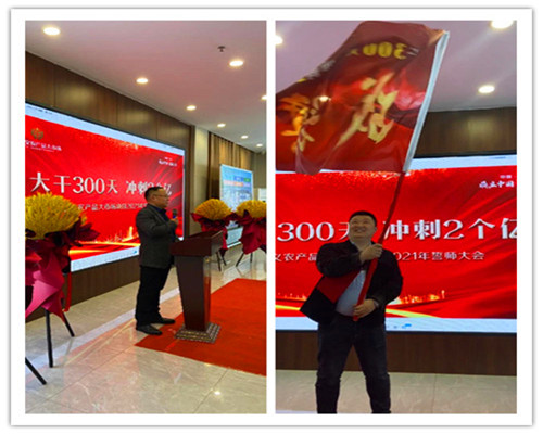 只爭朝夕,不負(fù)韶華,新征程,續(xù)輝煌。2021年3月1日,中鼎鑫農(nóng)·孝義農(nóng)產(chǎn)品大市場各位領(lǐng)導(dǎo)、員工、銷售精英齊聚展示中心,舉行“2021年開工誓師大會”,此次活動主題為“大干300天 沖刺2個(gè)億”!