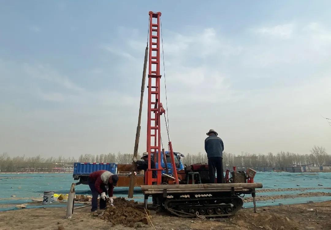 地質(zhì)勘察過程采用機鉆對地下土層進行采樣,數(shù)據(jù)分析,評估地下土層的承載力。