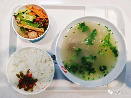 豬頭去皮下鍋大火燒開,小火慢燉煮3小時,出鍋之時醇香撲鼻,肉湯鮮香,少許蔥花點綴,色香味俱全,米飯配上咸菜。一碗下肚肉香留于唇齒,鮮美落于腹中。一個詞“稱坦”,這就是咱們合肥的豬頭湯!