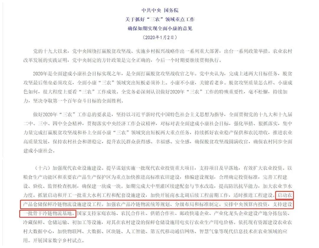 進入21世紀以來, 我國越來越重視農批市場建設,特別是以農批市場為基礎的冷鏈促進政策,更是穩(wěn)定“霸榜”每年的中央一號文件。