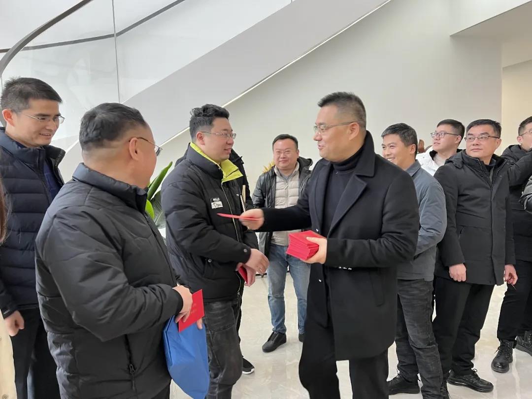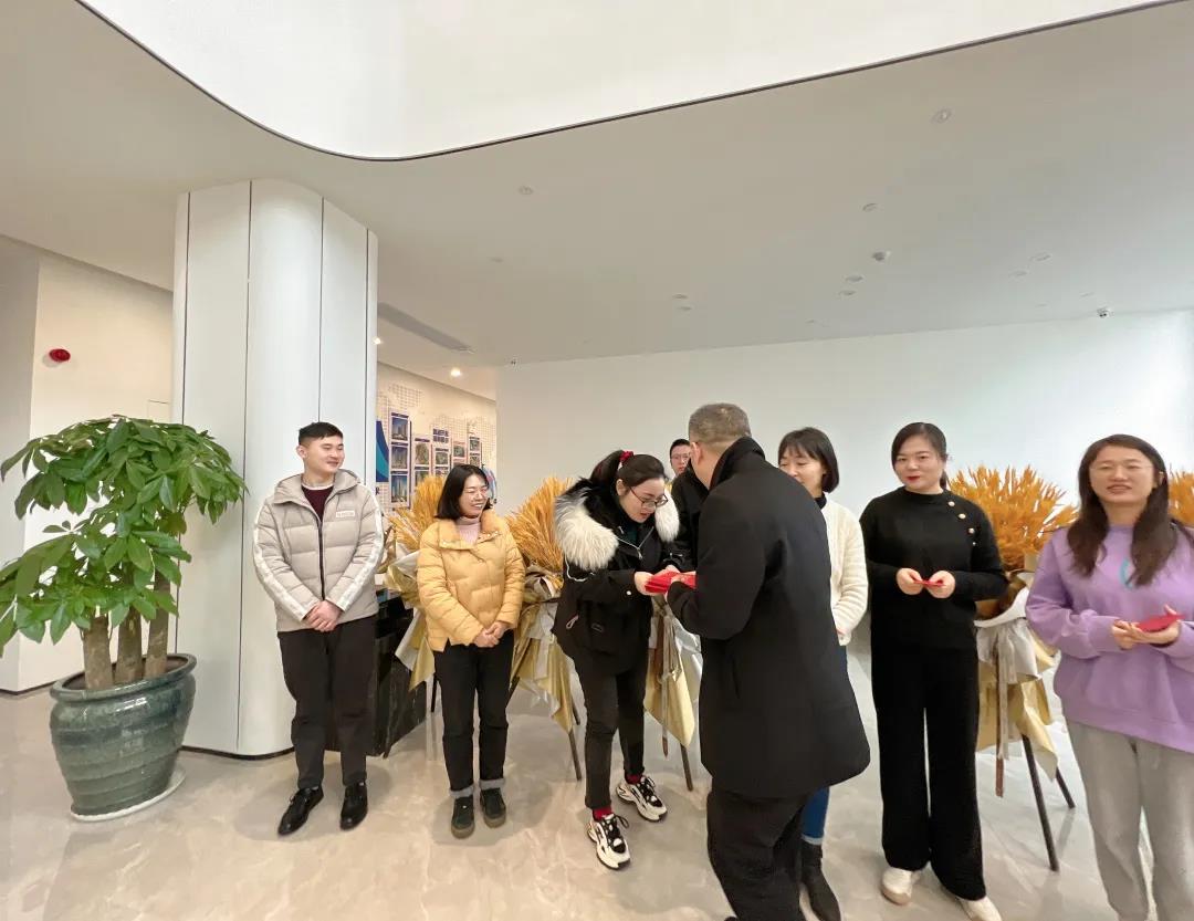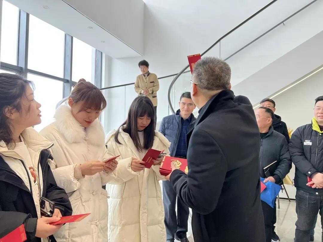 虎年開工日,全體鼎鑫人準(zhǔn)時(shí)到崗,伴隨著此起彼伏的新年祝福,全體員工以“元?dú)鉂M滿”的姿態(tài)進(jìn)入工作狀態(tài),董事長鄭景利親自為每一位員工送上開工紅包,寓意新的一年紅紅火火,萬事順利,一個(gè)個(gè)紅彤彤的紅包,寄托了董事長對每個(gè)人的美好祝福和殷切希望。