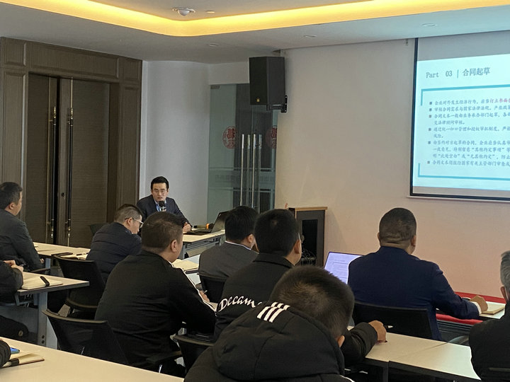 為提高公司各部門工作人員的法律知識水平,建立良好的法律意識,增強(qiáng)法律觀念,做到“學(xué)法、懂法、守法、用法”,提高工作人員在業(yè)務(wù)操作過程中法律風(fēng)險(xiǎn)的控制能力,并有效降低經(jīng)營風(fēng)險(xiǎn),提高經(jīng)濟(jì)效益。2023年3月18日上午,在集團(tuán)培訓(xùn)室組織公司全員開展了合同實(shí)務(wù)法律知識培訓(xùn)。