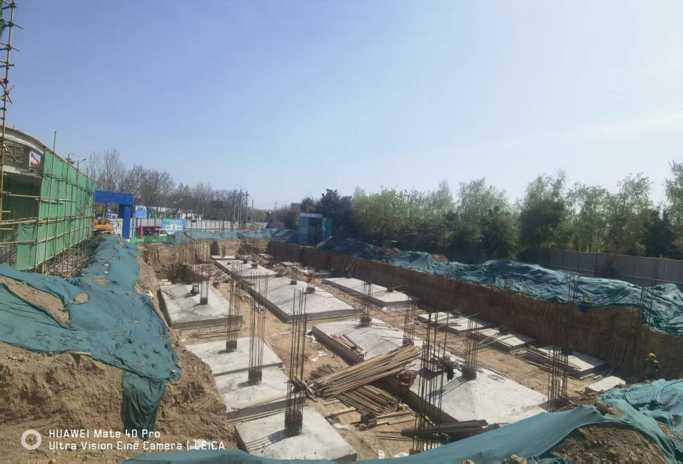 3#樓基礎(chǔ)承臺(tái)砼澆筑完成,鋼筋綁扎。內(nèi)支架搭設(shè)。