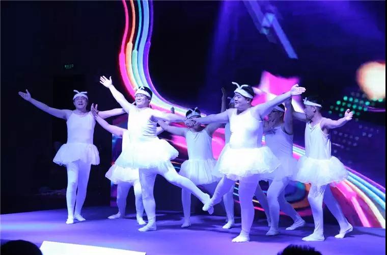 最讓人“眼前一亮”的是營銷招商部的八個(gè)重量級(jí)“小天鵝”,上臺(tái)為大家?guī)砹艘欢巍皟?yōu)美”的芭蕾。