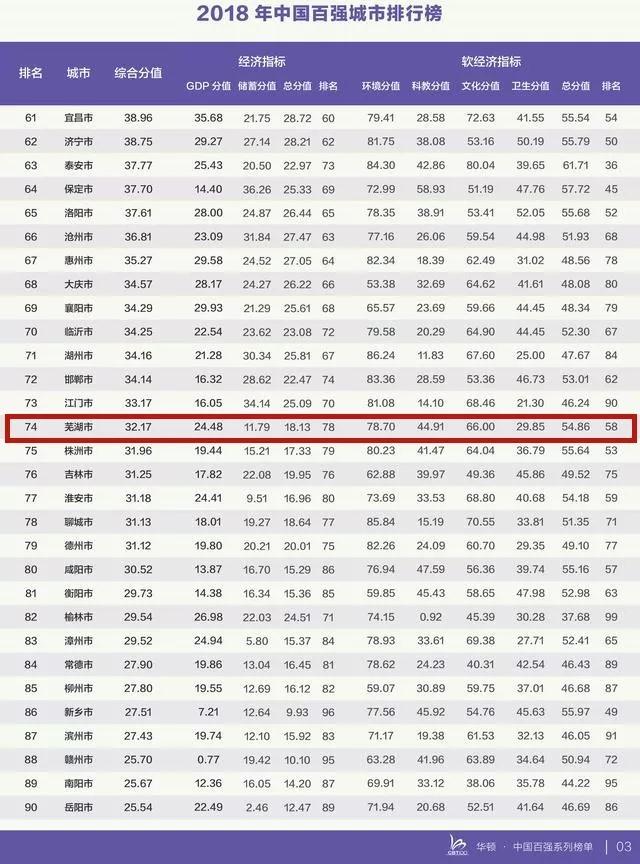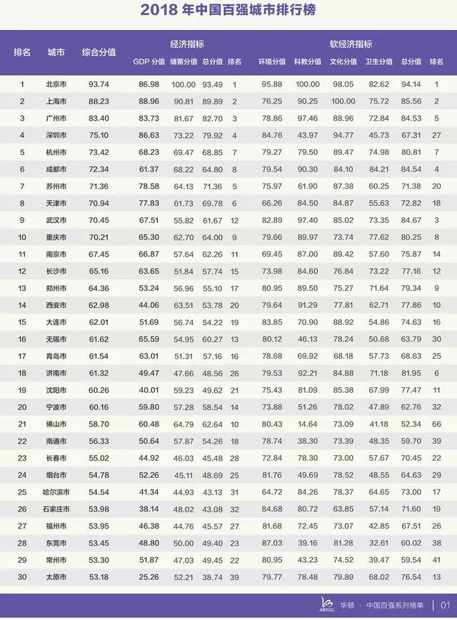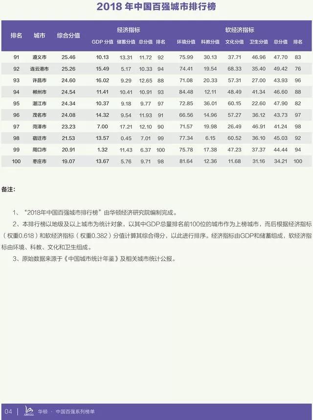 這是華頓經(jīng)濟研究院連續(xù)第四年編制發(fā)布“中國百強城市排行榜”數(shù)據(jù)。中國百強城市排行榜由經(jīng)濟和非經(jīng)濟(軟經(jīng)濟)兩大系列指標(biāo)綜合而成,數(shù)據(jù)來源于國家統(tǒng)計局。其中,經(jīng)濟指標(biāo)由GDP(國內(nèi)生產(chǎn)總值)和居民儲蓄兩部分構(gòu)成,占比61.8%,非經(jīng)濟(軟經(jīng)濟)指標(biāo)由科教、文化、衛(wèi)生、生態(tài)環(huán)境四部分構(gòu)成,占比38.2%。據(jù)悉,今年是華頓經(jīng)濟研究院連續(xù)第四次發(fā)布年度中國百強城市排行榜。