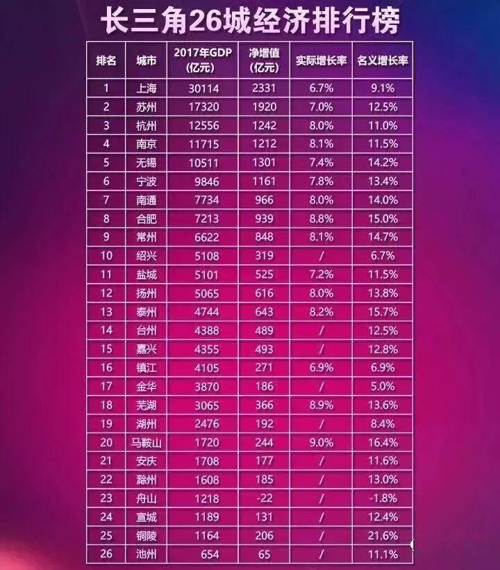 長三角地區(qū)26城的經(jīng)濟排名中,合肥2017年GDP達(dá)到7213億元,排名第8。