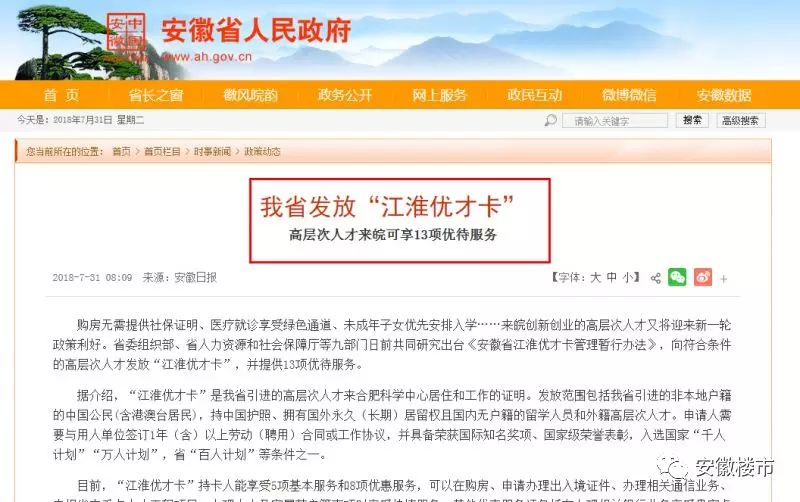 注意,這不等同于人才落戶新政。人才落戶是需要先落戶后買房,而江淮優(yōu)才卡,滿足條件的購房者可直接憑此卡去購房。