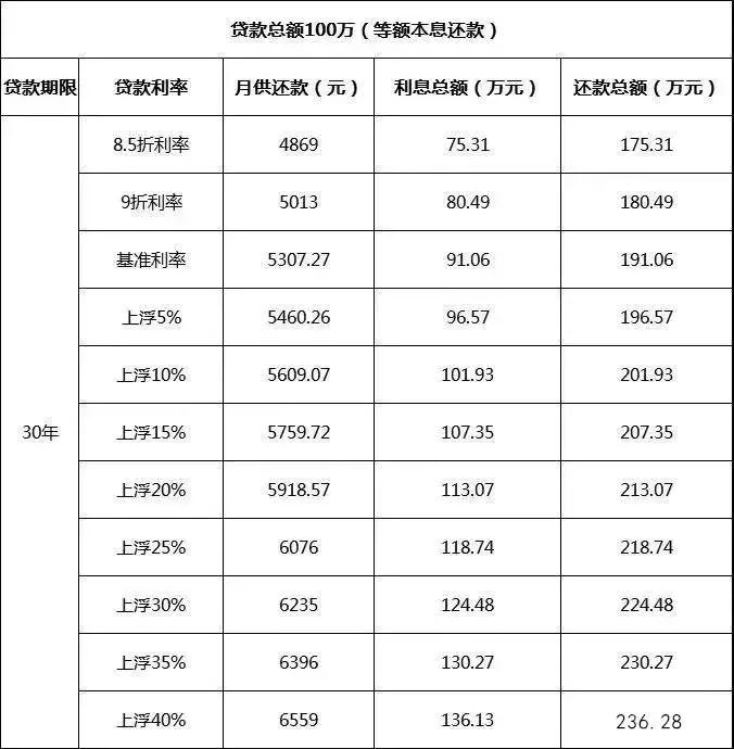 (等額本息還款對(duì)照表,上浮30%利息漲33萬(wàn))