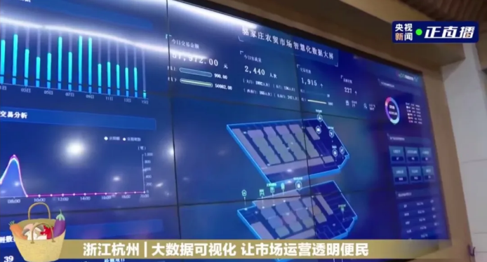 在杭州的駱家莊農(nóng)貿(mào)市場,市場方通過智慧農(nóng)貿(mào)管理系統(tǒng),全程監(jiān)控商戶交易流水和食品溯源,市民可以通過智慧化數(shù)據(jù)大屏和豬肉追溯查詢,追根溯源菜品源產(chǎn)地,實(shí)時(shí)查詢價(jià)格和商戶信息。大數(shù)據(jù)可視化讓市場運(yùn)營更透明、便民。