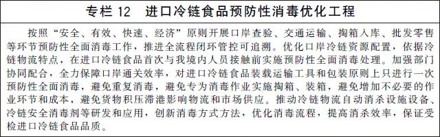 健全檢驗(yàn)檢測檢疫體系。適應(yīng)不同農(nóng)產(chǎn)品檢驗(yàn)檢測檢疫要求,完善覆蓋從種養(yǎng)殖、加工到銷售終端全鏈條以及冷鏈物流包裝、運(yùn)載工具、作業(yè)環(huán)境等全要素的檢驗(yàn)檢測檢疫體系。加強(qiáng)檢驗(yàn)檢測檢疫設(shè)施建設(shè)和設(shè)備配置,完善應(yīng)急檢驗(yàn)檢測檢疫預(yù)案,實(shí)行閉環(huán)式疫情防控管理,防范非洲豬瘟、新冠肺炎、禽流感等疫情擴(kuò)散風(fēng)險,提高重大公共衛(wèi)生事件等應(yīng)急處置能力。