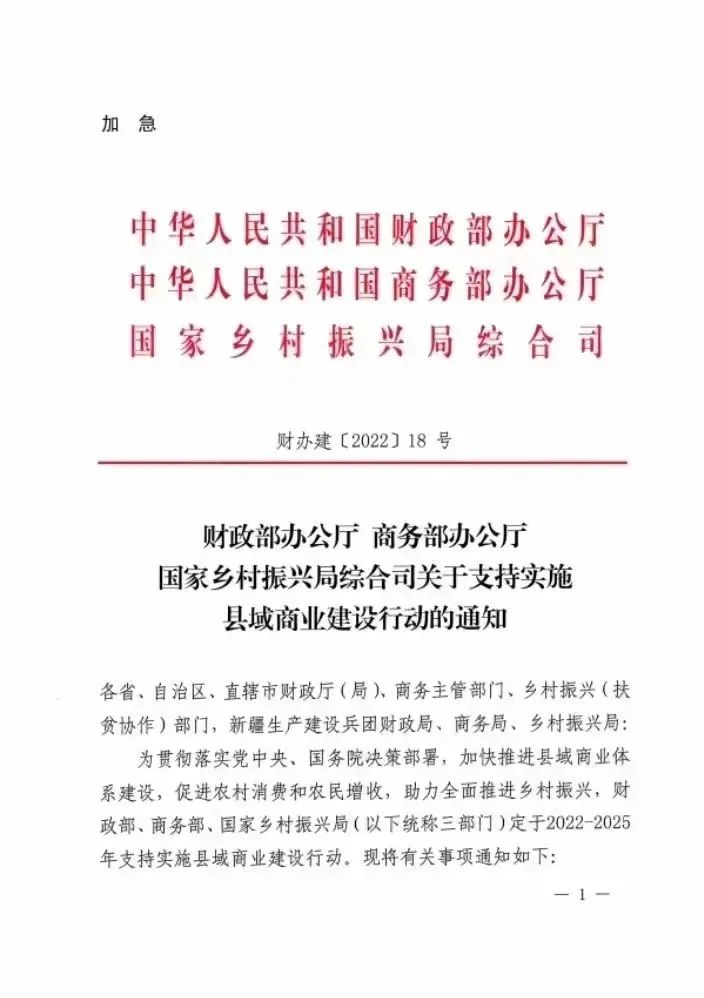 財(cái)政部、商務(wù)部、國(guó)家振興局關(guān)于支持實(shí)施縣域商業(yè)建設(shè)行動(dòng)的通知